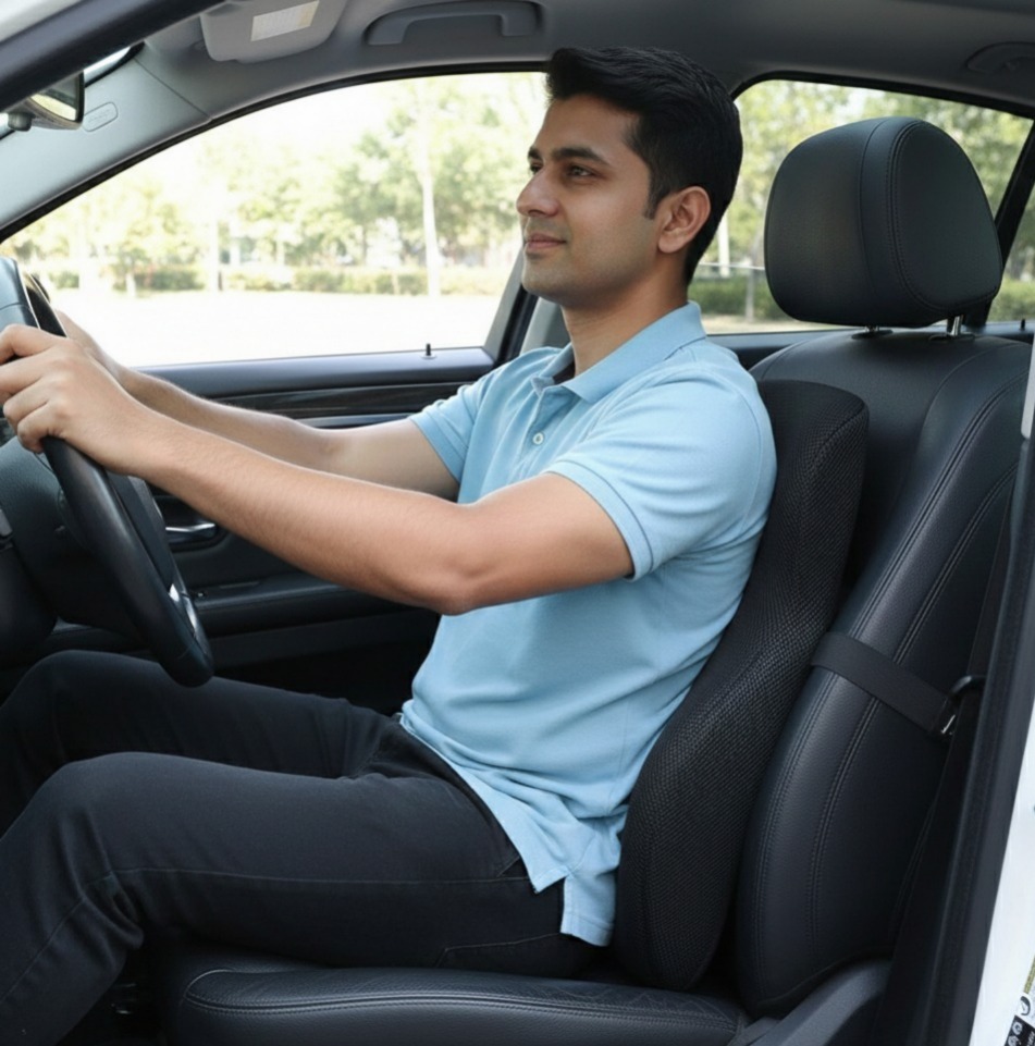 Ergonomic design to relieve back pain caused by extended sitting or driving hours.